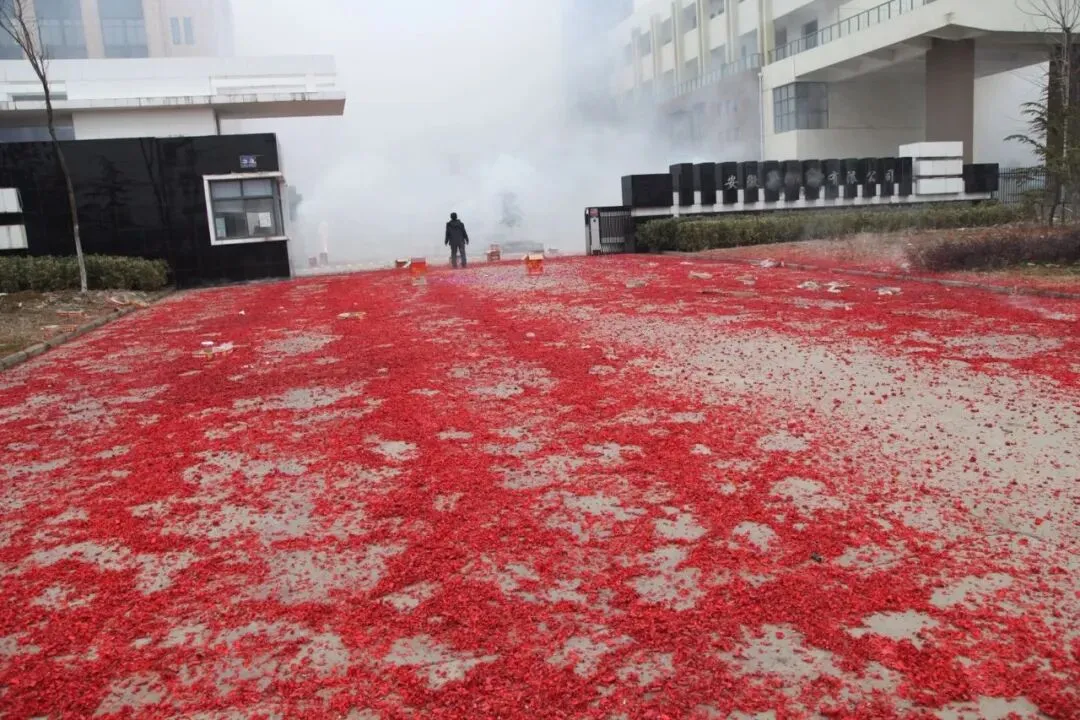 研发新大厦封顶放的鞭炮