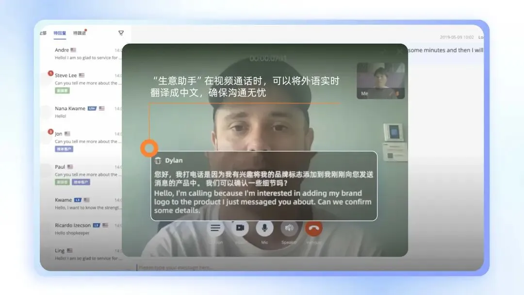 比如商品发布完成后,生意助手会在商品管理环节发挥洞察分析,基于全球与阿里巴巴国际站采购趋势,给出新品、运营建议等品类策略;在商家每日都会操作的RFQ(request for quotation,意为报价请求,海外买家在平台上发布明确采购需求的一种数字贸易方式)环节,其不仅能总结买家采购需求重点,还能智能生成报价内容;在与买家线上沟通过程中,它会根据买家问题、沟通上文与买家偏好,提供辅助回复话术;到了和买家直接视频沟通的环节,它又会提供实时翻译字幕,意味着即使是只会说中文的卖家遇到了只会说英文的买家,也可以顺畅沟通。