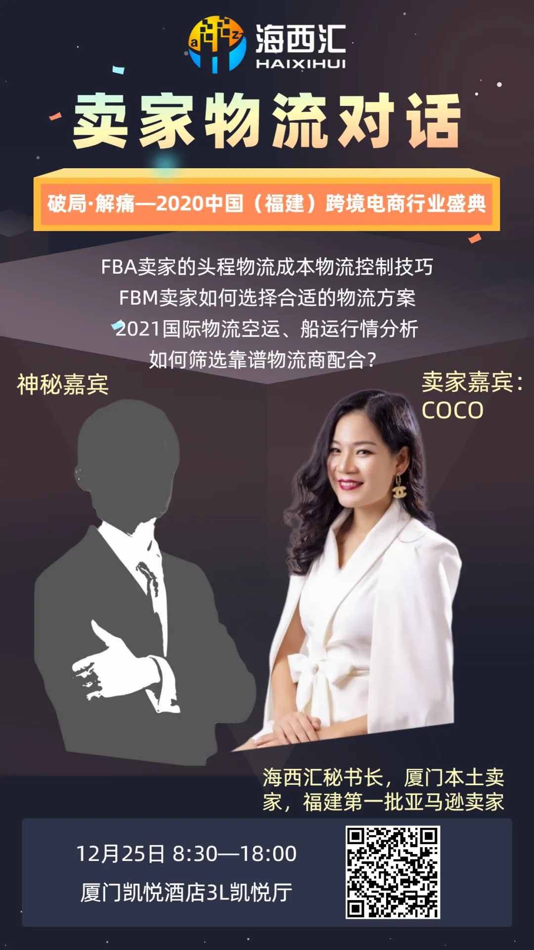 旺季跨境物流再迎“暴击”!卖家如何迎刃而解?12月25日“破局 解痛”2020中国(厦门)跨境电商行业盛典,海西汇针对了各国物流痛点、海外仓备货、库存管理预测和物流渠道优化等问题,设立物流专场,头部大卖对话物流服务商,解决卖家实际问题。赶紧扫码报名吧!