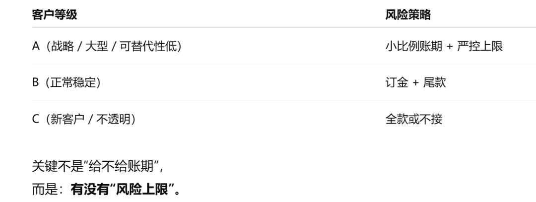 “提前打通”信用保险渠道。知道怎么投保,知道什么客户能保,知道理赔逻辑,知道“保多少才有意义” 原因很简单:风控不是现在用不用,而是“要用时,你能不能马上用”。