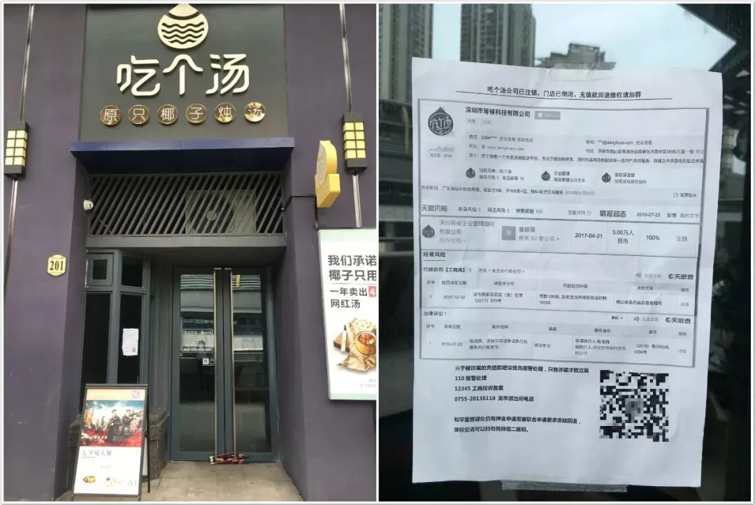 几乎没有一点征兆。号称1年卖出400万份网红汤,吃个汤突然之间关闭了深圳全部门店,总部已经人去楼空。