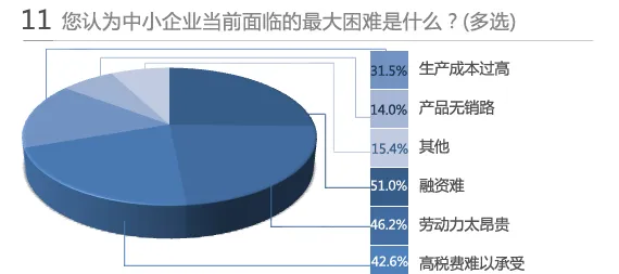 2011年网上调查,超半数的企业家认为,中小企业的最大困难是融资难