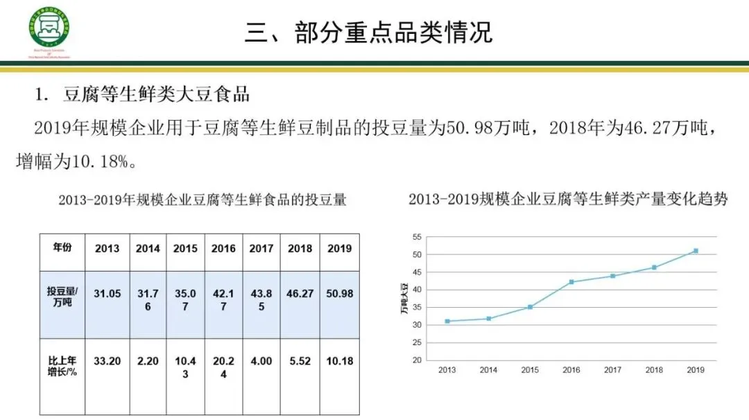 本报告分为“我国大豆食品行业2019年状况”、“规模以上豆制品企业(全国前五十强)状况”、“部分重点豆制品品类状况”、“豆制品产业发展前景”、“豆制品行业的机遇与挑战”、“大豆食品行业健康发展亟待解决的几个问题建议”、“协会近期重点推进的工作”七个部分,由中国食品工业协会豆制品专业委员会副会长兼秘书长吴月芳撰写,系中国豆制品行业年度报告,未经许可,任何个人或组织不得复制、转载、摘编或以其他任何形式的商业应用。