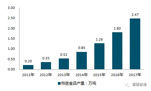 2011-2017年中国特医食品行业产量情况
