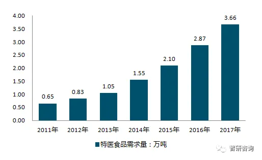 2011-2017年中国特医食品行业需求量情况