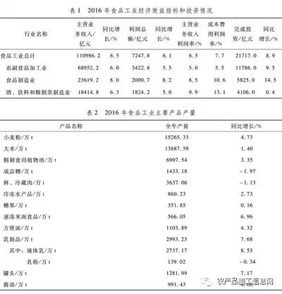 2016年食品工业统计数据