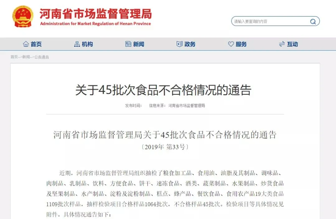 二、河南省市场监督管理局针对抽检发现的问题,对于不合格样品涉及外省生产单位的,已按规定移送相应省级食品监管部门进行调查处理;对于不合格样品涉及省内生产经营单位的,已要求郑州、开封、洛阳、平顶山、安阳、焦作、鹤壁、濮阳、许昌、漯河、三门峡、南阳、商丘、周口、济源、长垣、永城、鹿邑市(县)市场监管部门(食品药品监管部门)对涉及单位依法处理,责令查清不合格产品的批次、数量、流向,召回不合格产品,采取下架等措施控制风险,分析原因进行整改,并依法予以查处。