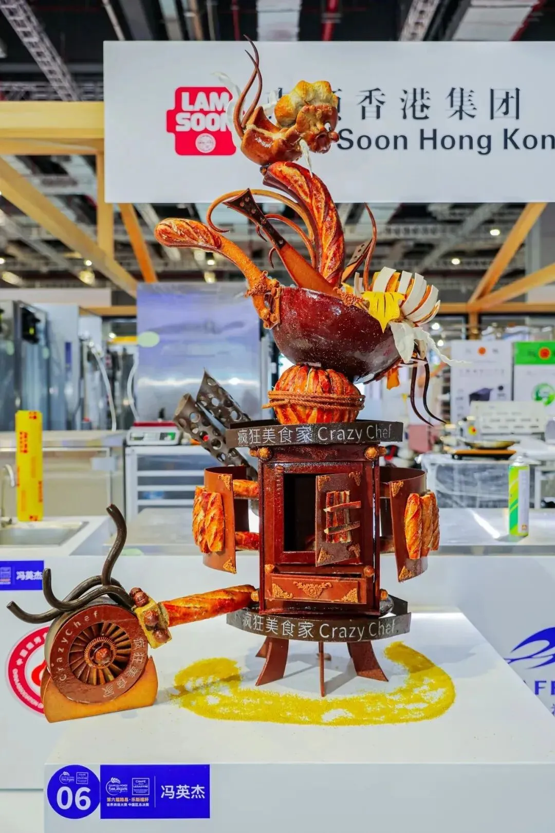 艺术面包冠军是冯英杰。他的作品360度都有观赏性,同时上半部分有很多弧面且做了倾斜,在叠加时把控平衡性、稳定性的难度不低。当然啦,现场也不全是这么硬核的比赛。