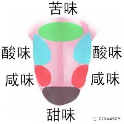 而味觉就相对要简单、好练一些。我在网上挑了一张绘制的比较好看的舌头的味觉分布图,大家可以看一下。