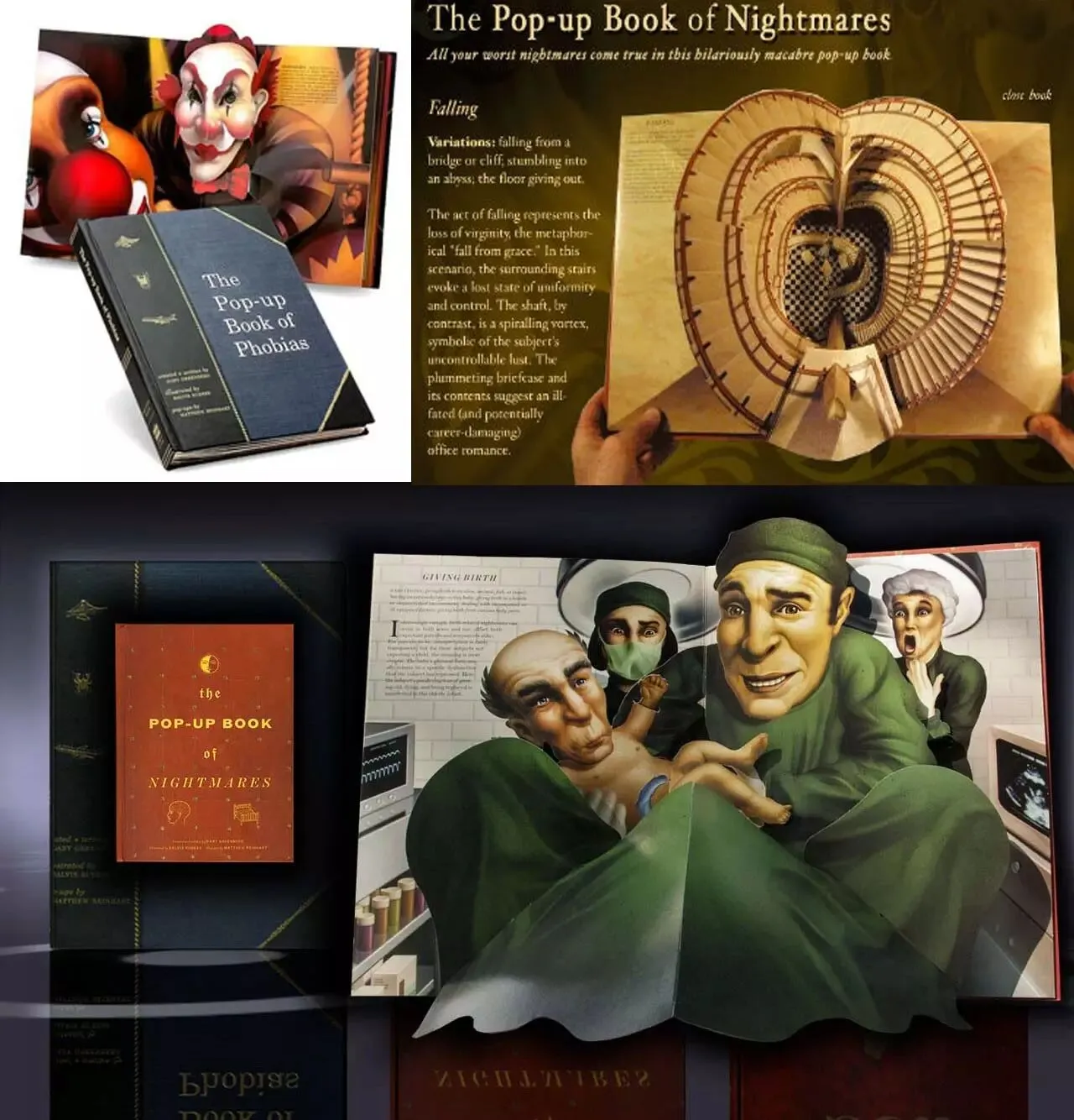 超现实噩梦、恐惧立体书,真实还原潜意识里的各种恐惧,将你置身一个疯狂世界的中心。这些场景你一定都梦到过:明天就是期末考你却什么都没准备、被某个恐怖物体追着跑、从高空绝望坠落……对心理学感兴趣喜欢cult片的朋友不要错过。