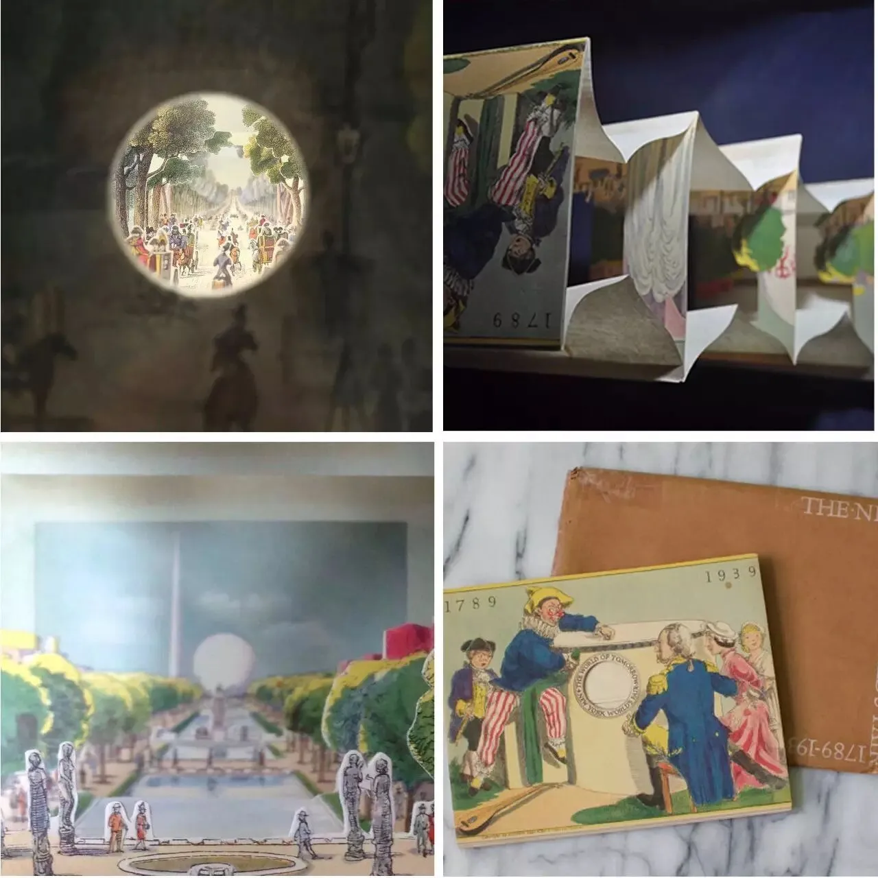 1939年出版,极为罕见的隧道立体书,由六个风琴式连接的单页组成,把它拉起来从中间看进去的时候能看到景深。