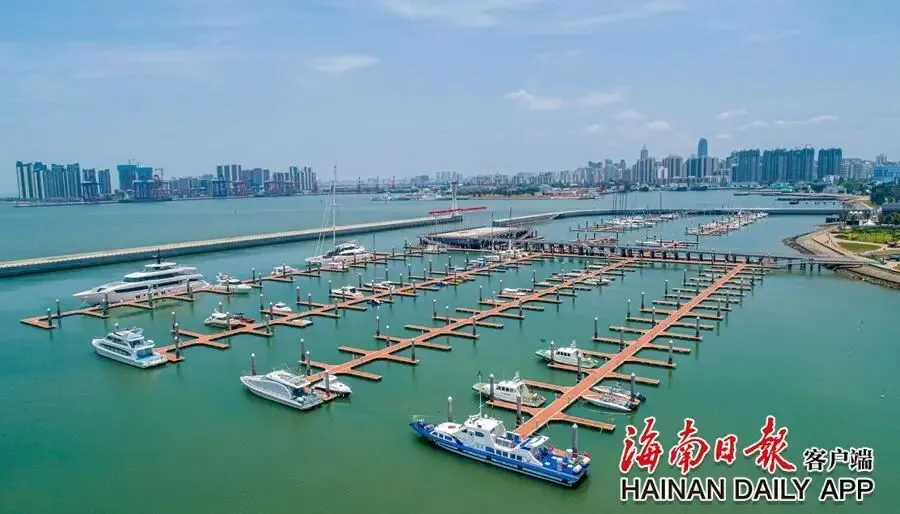 2021年5月4日,位于海口市国家帆船基地公共码头的消博会游艇展现场,游艇泊位上停放了几十艘游艇,游艇陆续抵达。海南日报记者 袁琛 摄