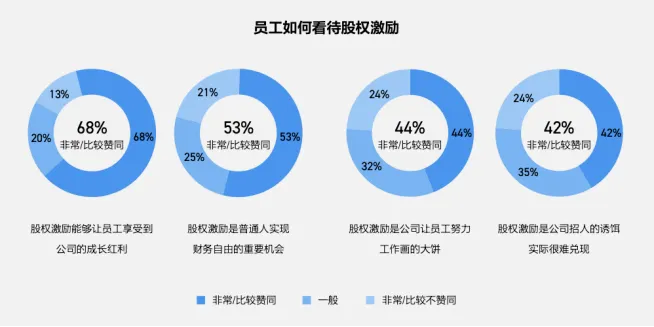 据《2021年股权激励研究报告》显示,在参加脉脉用户问券调研的用户中,相信股权激励价值的员工占大多数,但也有一部分员工对股权激励的价值持负面态度,认为股权激励是公司让员工努力工作画的大饼,是公司招人是的诱饵,很难兑现。