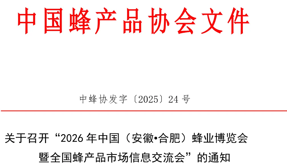 由中国蜂产品协会主办的“2026年中国(安徽•合肥)蜂业博览会暨全国蜂产品市场信息交流会”,拟定于2026年3月17-19日在安徽省合肥市召开。现将有关事项通知如下: