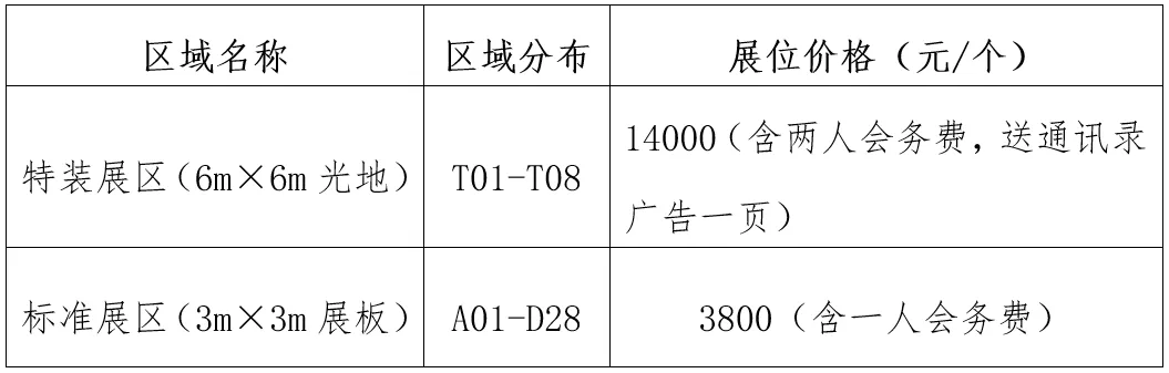 本次博览会设标准展位(3m×3m)100个、特装展位(6m×6m)8个。
