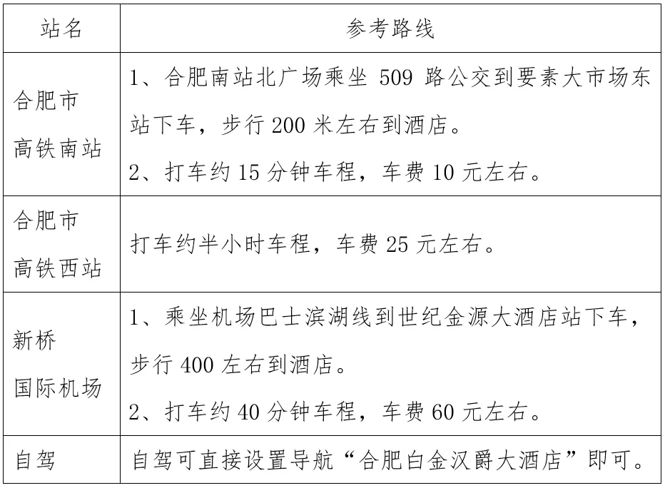 本次会议不设接送站。请各位参会代表参考以下交通方式前往酒店会场。