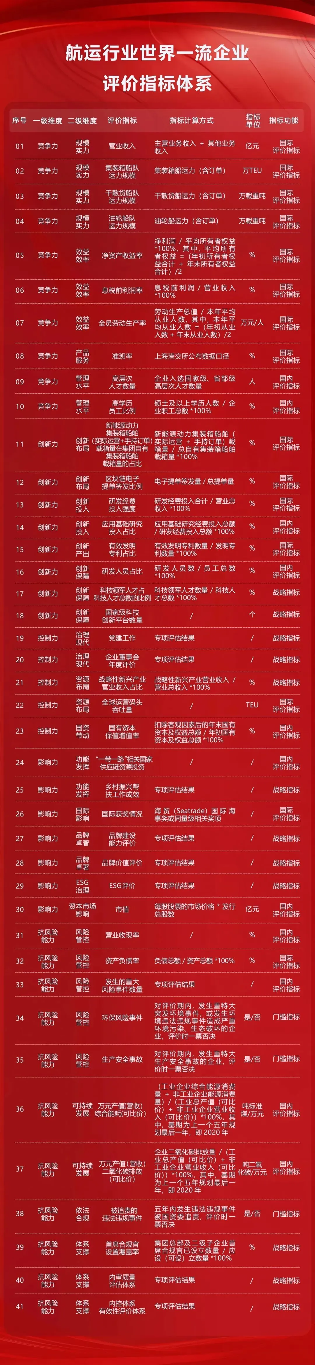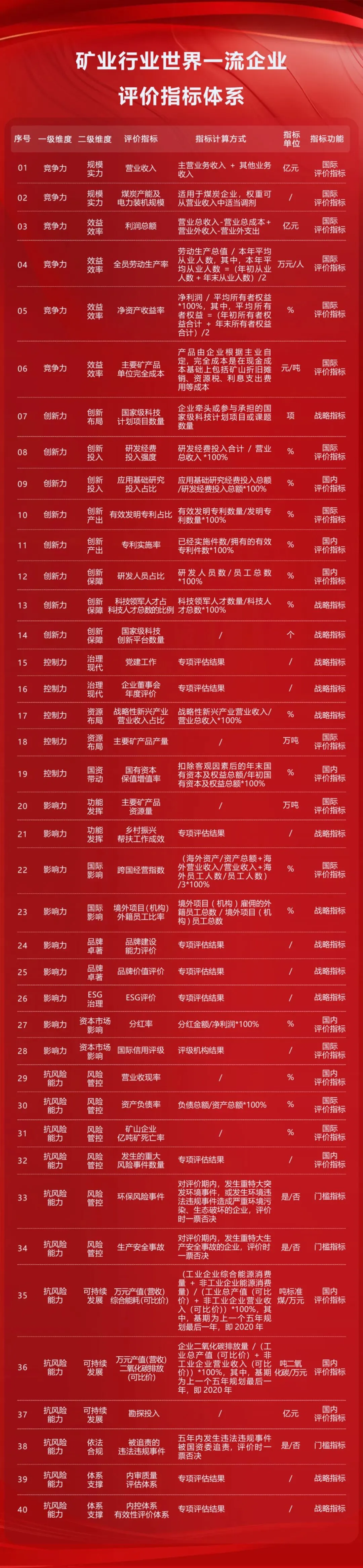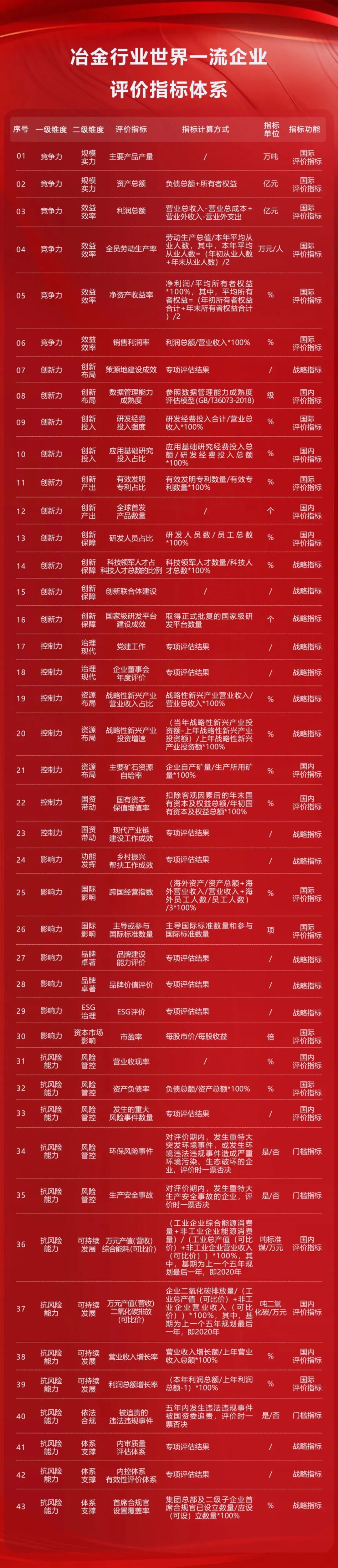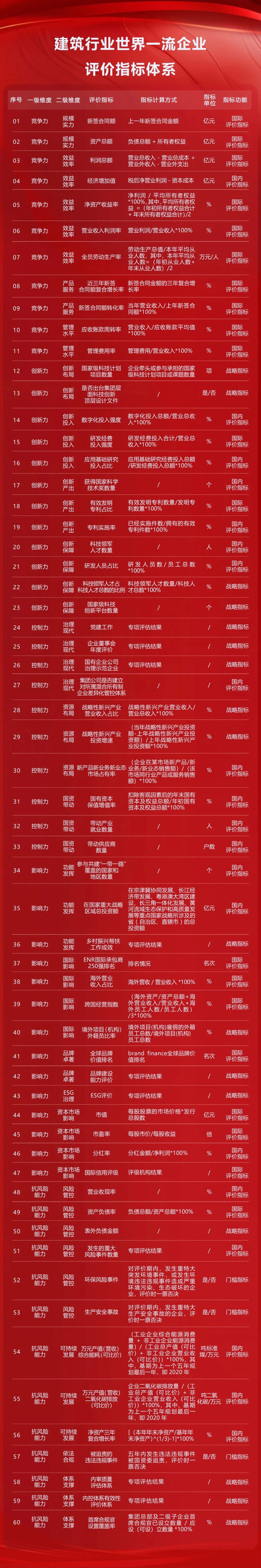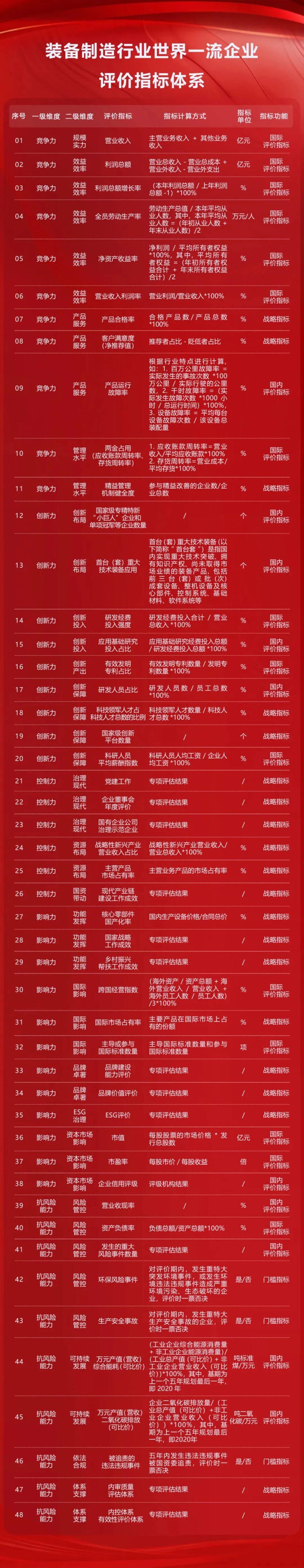 国有企业首批11个行业世界一流企业评价指标体系。
