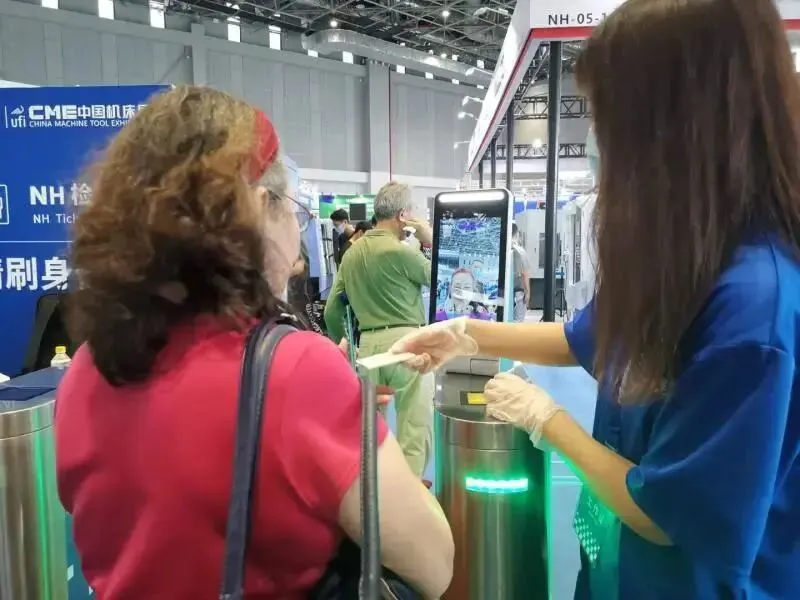 按照方案,本届CME中国机床展,在安检处进行疫情防控检查,增设新型无感知的红外测温监控设备,配置手持式测温枪、消毒水、消毒洗手液、医疗废弃物垃圾桶等相应的防疫物资。同时,采取线上预约制,实名办证、实名进场,加强入场安检,确保‘人证合一’