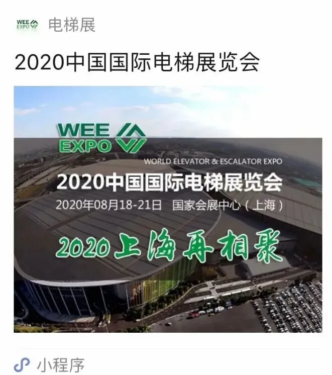 2020中国国际电梯展览会将于8月18-21日在国家会展中心(上海)召开