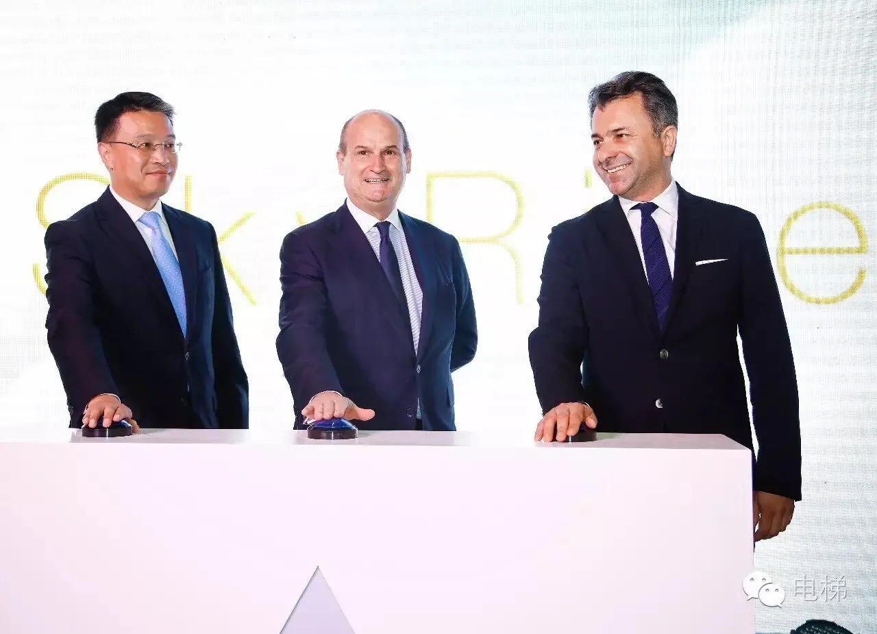 奥的斯全球总裁戴培杰、全球重大项目副总裁Bora、中国区总裁郑培明(自右向左)启动新测试塔建造发布仪式