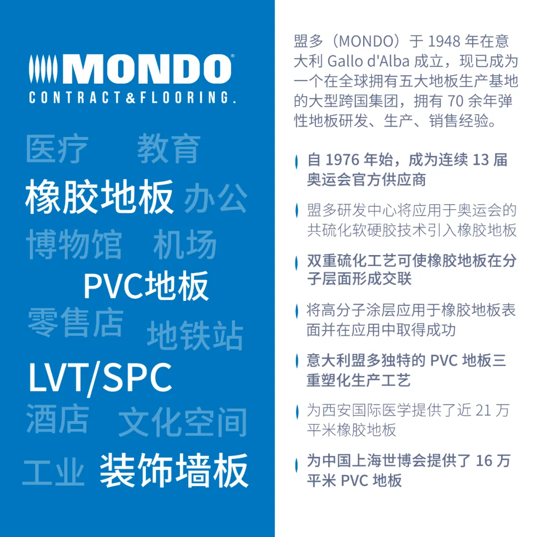 “我们很高兴能够参加这次展会,在这里我们能面向行业内的专家,更好的展示我们在医疗保健地板方面的最新创新。”Mondo盟多地板中国区销售总监Robert说道:“我们的地板解决方案旨在满足医疗保健环境的严格要求,提供优秀的耐用性、安全性和感染控制,以支持医院实现更好的患者护理。”