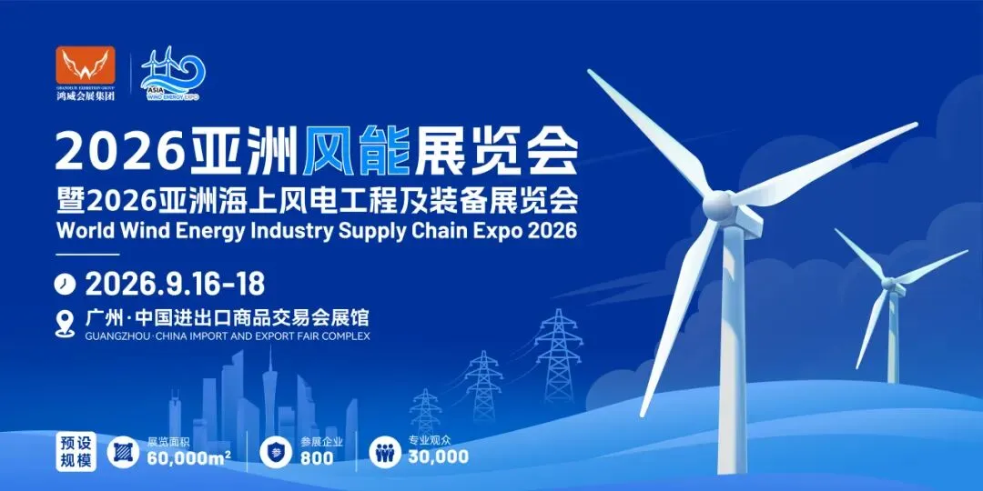 聚焦产业・风动全球。2026亚洲风能展暨2026亚洲海上风电工程及装备展览会将于 2026年9月16-18日 在 广州·广交会展馆 正式启航。