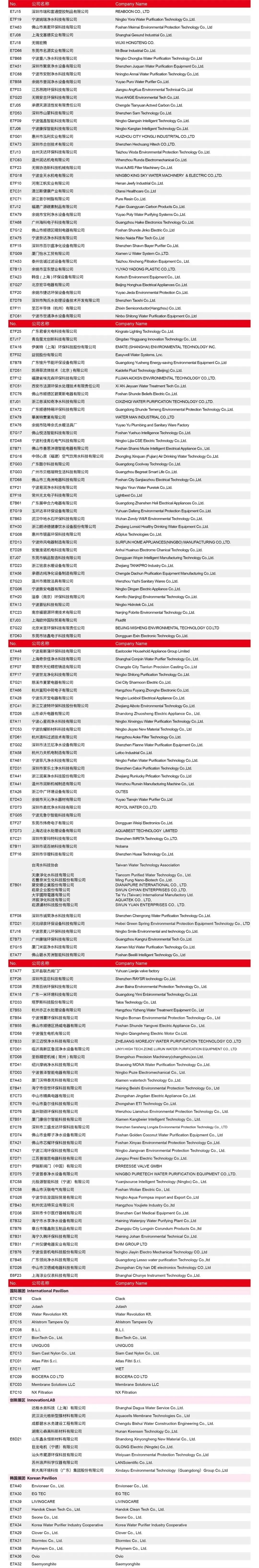 展位图及展商名单