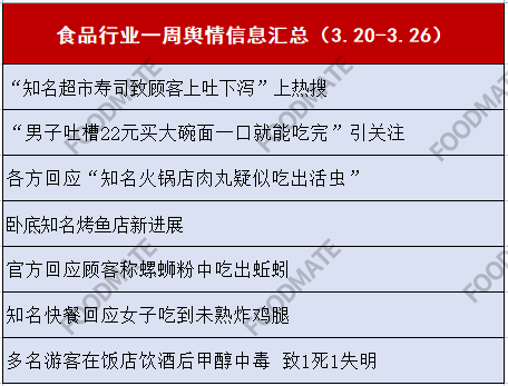食品行业一周舆情信息汇总(3.20-3.26)
