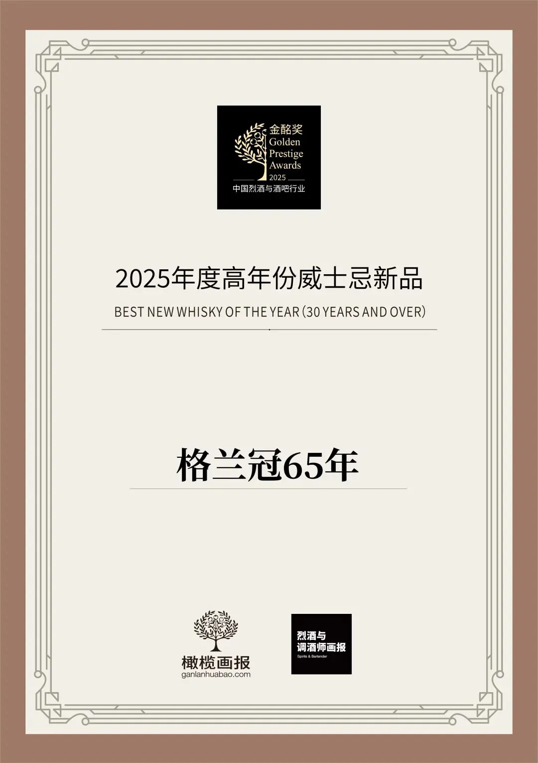 2025年,格兰冠推出的全新瑰冠系列的首款佳作——格兰冠65年在香港盛大发布。格兰冠以优雅的花果香调而著称,而这款格兰冠65年单一麦芽,则将花果香调在时间沉淀下延展而出的深邃风味展现得淋漓尽致。于1958年完成蒸馏,在历史悠久的格兰冠四号仓库中沉淀65载,使其呈现出迷人的深邃红木色,甜美的焦糖与成熟的黑莓果香、檀香木气息交织,丰富的果脯蛋糕和蜜枣般的口感呈现出时光沉淀的风味,在柑橘、香料和优雅的橡木气息中带来深邃而绵长的余韵。