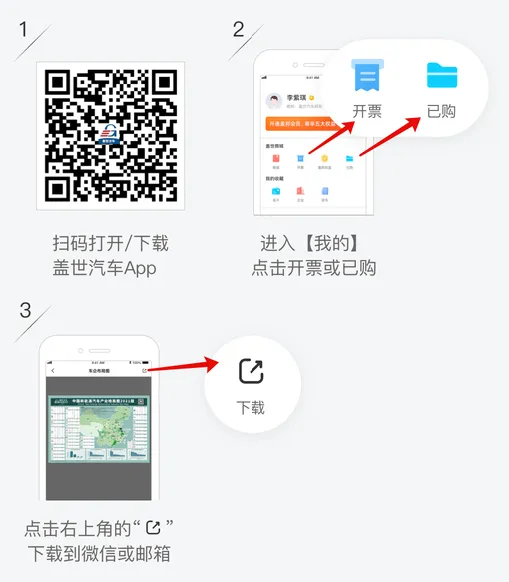 A:订单在已发货的状态下,使用手机号登录盖世汽车APP,在APP【我的】【开票】中点击【申请】按钮,即可自主开票并下载;