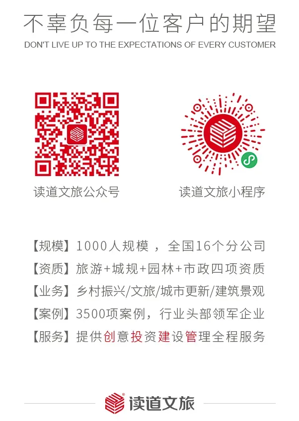 读道文旅秉承“不落地、不创意,不辜负每一块土地的期望”的服务宗旨,在乡村振兴+文旅项目双轮驱动下,围绕“创投建管”四位一体产业链,在农文旅融合领域积累了扎实的实战经验,始终致力于为项目提供从顶层设计到落地运营的全周期服务。