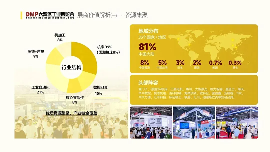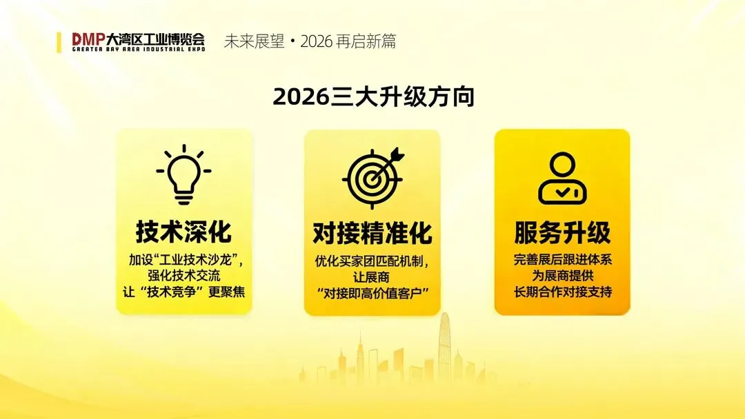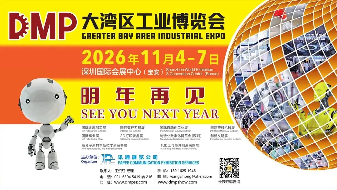 2026年DMP大湾区工博会规划8大展馆,16万平米,展示内容涵盖金属加工、自动化、塑料加工、压铸铸造及数控刀具、工业测量、模具材料、3D打印、创新发明等各大主题。欲知更多详情,请点击: