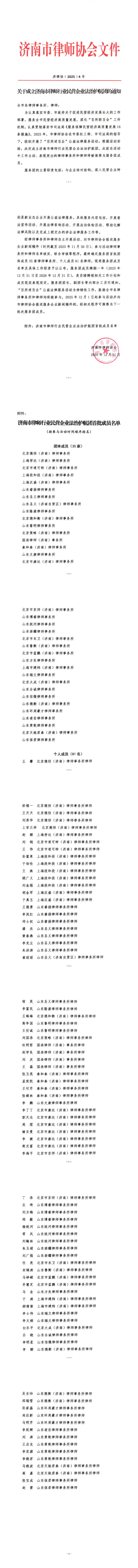 关于成立济南市律师行业民营企业法治护航团的通知
