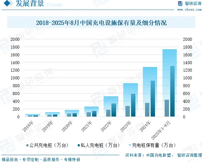 电动汽车的快速普及有效带动了充电桩单桩利用率的提升,为充电运营商改善盈利状况创造了有利条件。在此过程中,消费者对快速充电需求的日益凸显,正持续推动高压快充技术成为行业关键解决方案,高压快充概念再度活跃,推动行业发展。中国充电联盟数据显示,截至2025年8月,中国充电桩保有量为1734.8万台,较2024年底增加453万台。其中,公共充电桩数量为431.6万台,较2024年底增加73.7万台;私人充电桩数量为1303.2万台,较2024年底增加379.3万台。充电桩保有量的增长为高压快充技术的推广与应用奠定了坚实的设施基础。