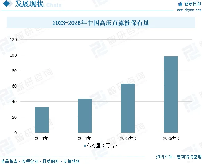 近年来,随着电动汽车市场的快速扩张与消费者对高效补能需求的日益提升,高压快充技术凭借其通过提升电压与电流以大幅缩短充电时间、显著提高充电效率的突出优势,已成为补能技术未来发展的重要方向。在此趋势下,众多车企已陆续部署800V及以上高压电气平台,旨在实现更极致的快速充电体验。作为高压充电体系中的关键基础设施,高压直流充电桩以其高效、快速的充电特性,承担着重要的市场角色。目前,我国高压直流桩的保有量整体保持稳步增长。数据显示,2024年中国高压直流桩保有量为44万台。预计到2026年中国高压直流桩保有量达98万台。