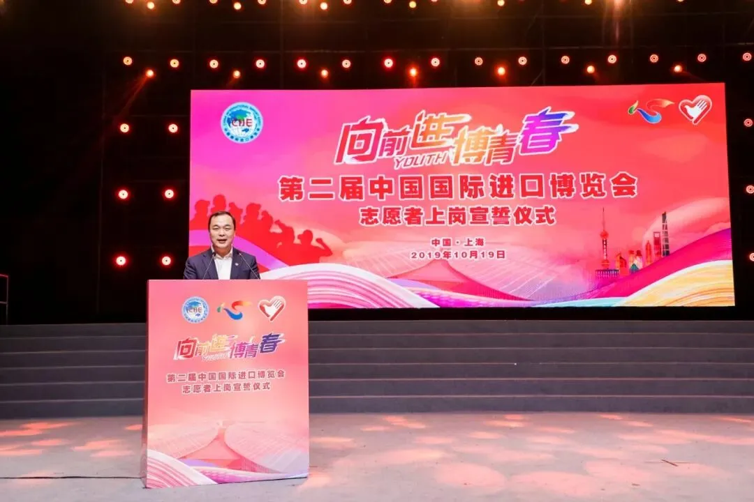 中国国际进口博览局副局长、国家会展中心党委书记、董事长孙成海致辞,高度评价了志愿者在首届进博会服务保障中的优异表现和贡献,勉励全体进博会志愿者再接再厉,全力以赴,助力打造永不落幕的进博会,以优异成绩庆祝新中国成立七十周年。