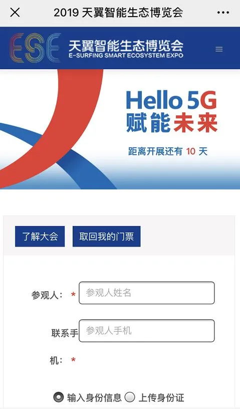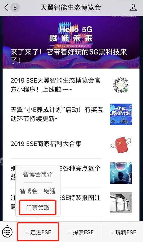 点击菜单栏【走进ESE】-【门票领取】