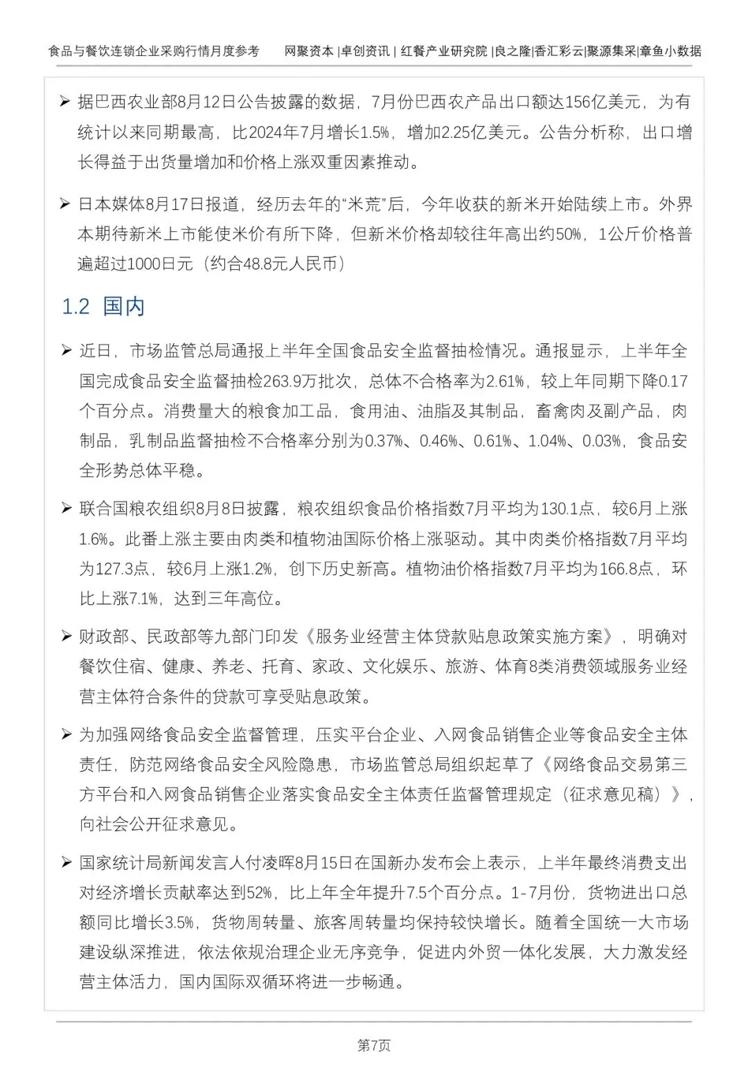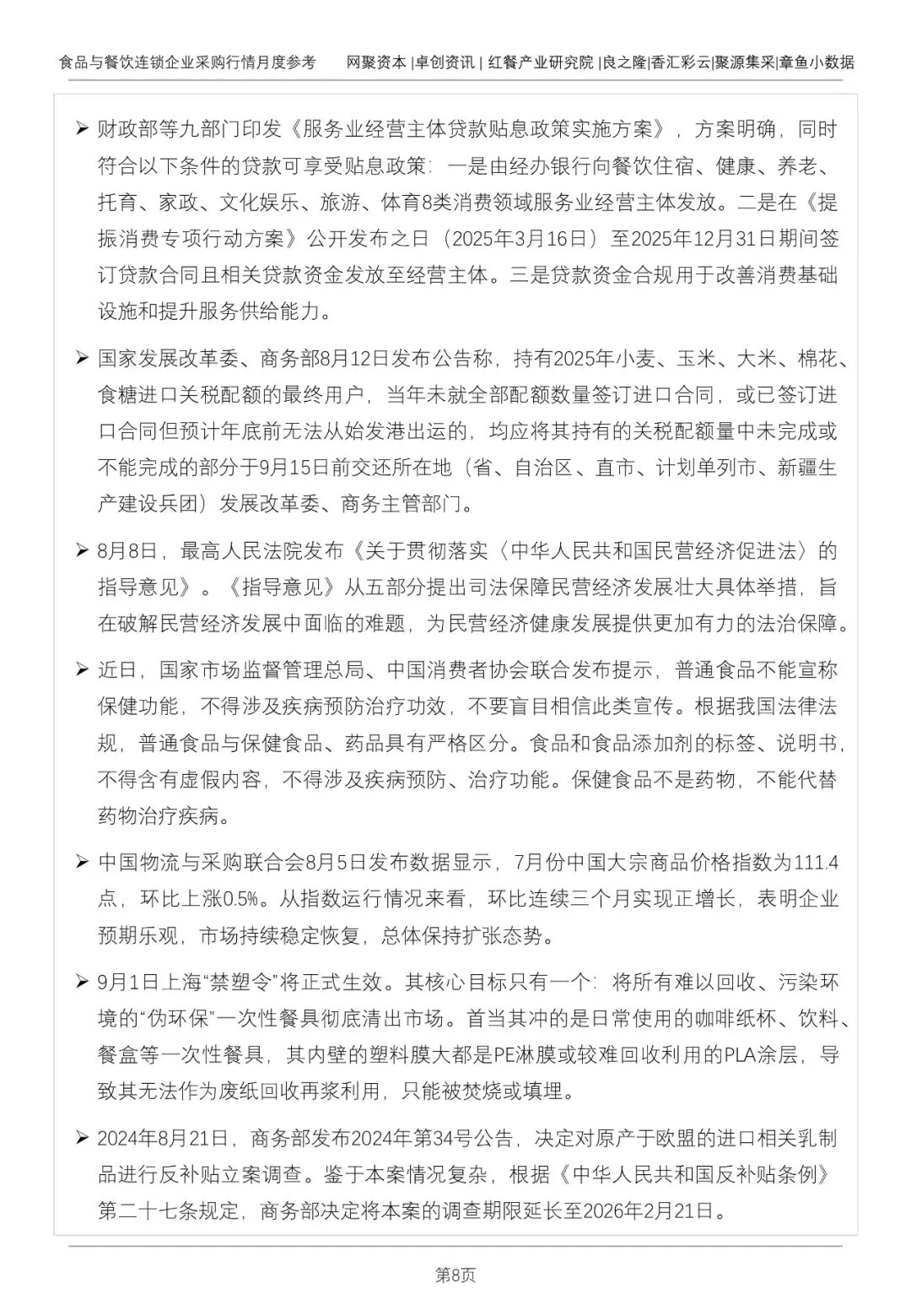 PS:文末附今日免费领取方式2025年食品与餐饮连锁企业采购行情08月度参考