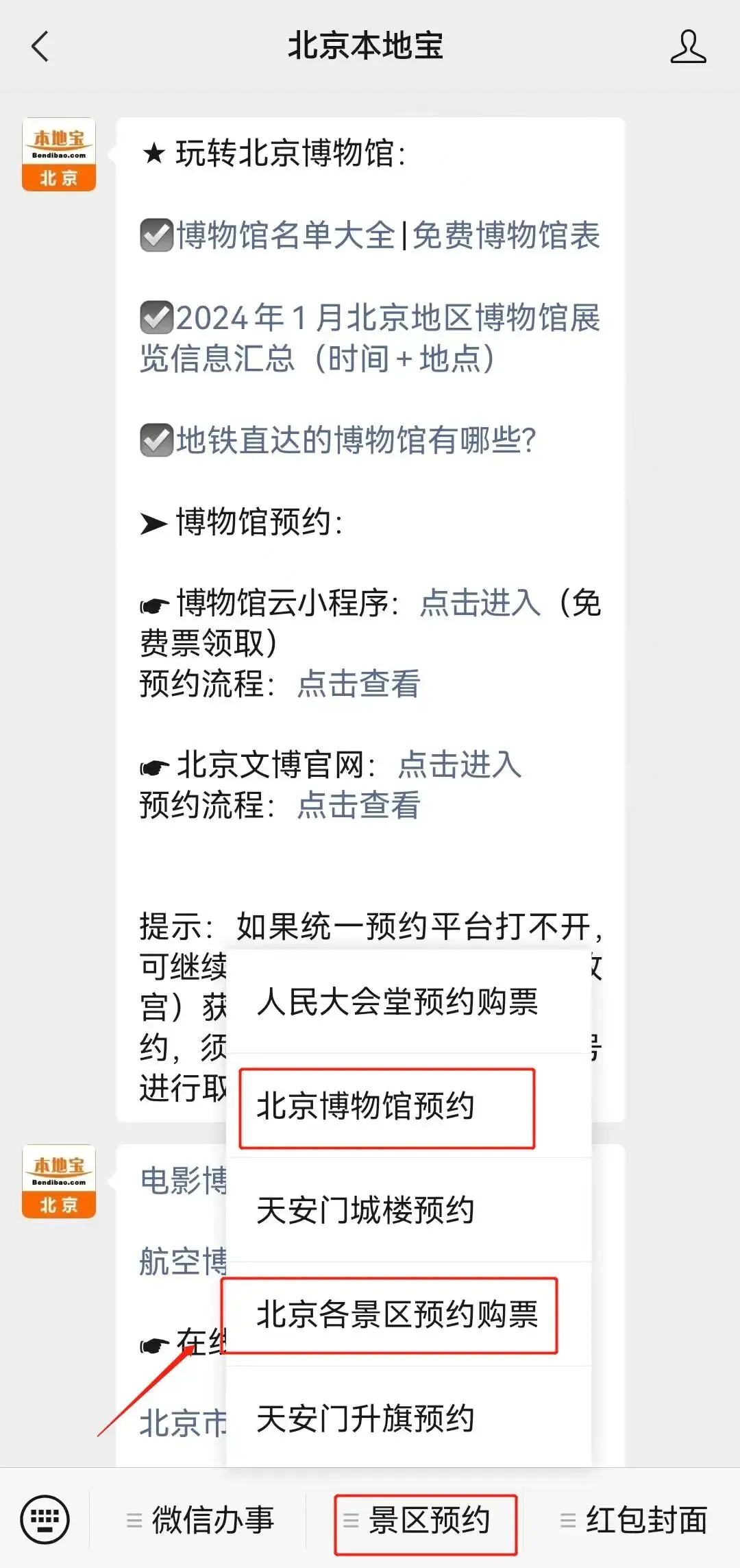 长按识别下方二维码,关注【北京本地宝】微信公众号,在底部菜单栏【景区预约】点击【北京博物馆预约】、【北京各景区预约购票】即可获取北京各大景区、博物馆预约购票入口