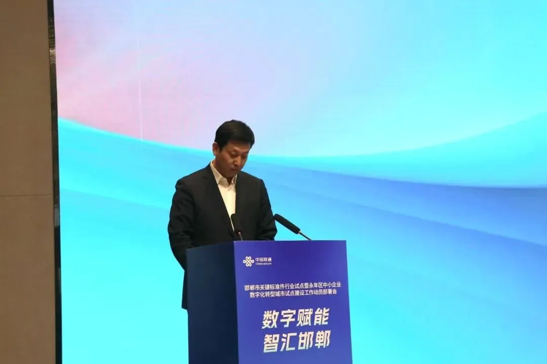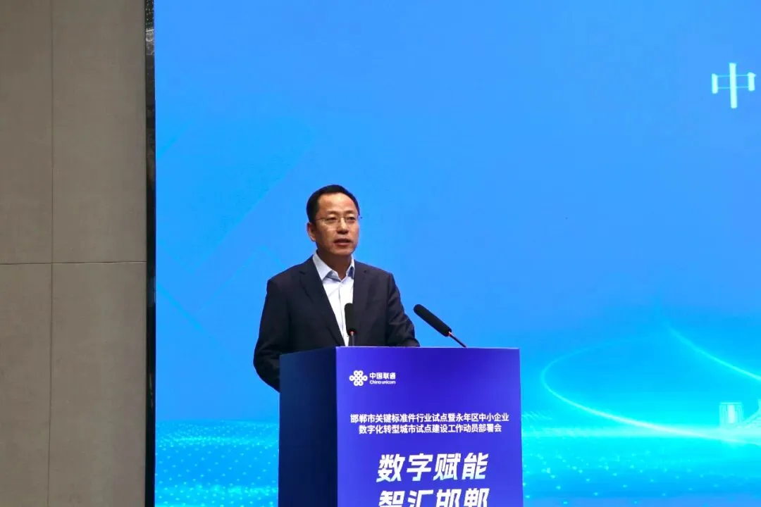联通邯郸分公司副总经理鲁兴智围绕关键标准件行业暨永年区中小企业数字化改造作工作安排。