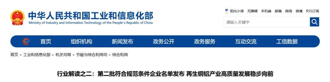近日,工业和信息化部公告第二批符合《废铜铝加工利用行业规范条件》(以下简称《规范条件》)的企业名单,共26家废铜铝加工利用企业入围,与首批入围企业数量相当。截至目前,两批符合规范条件的企业累计53家,覆盖12个省、直辖市及自治区。