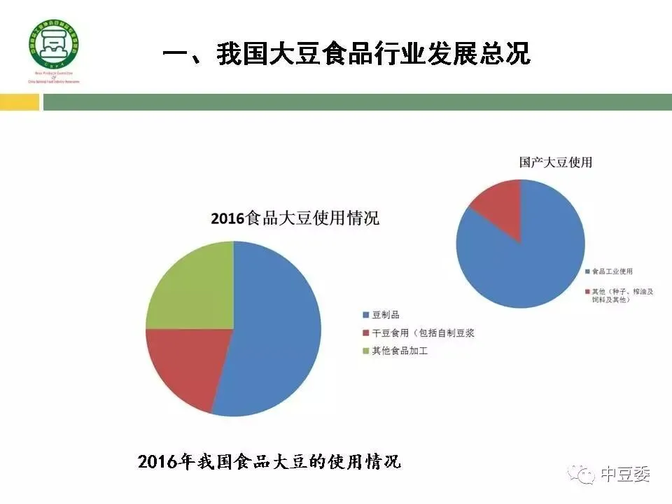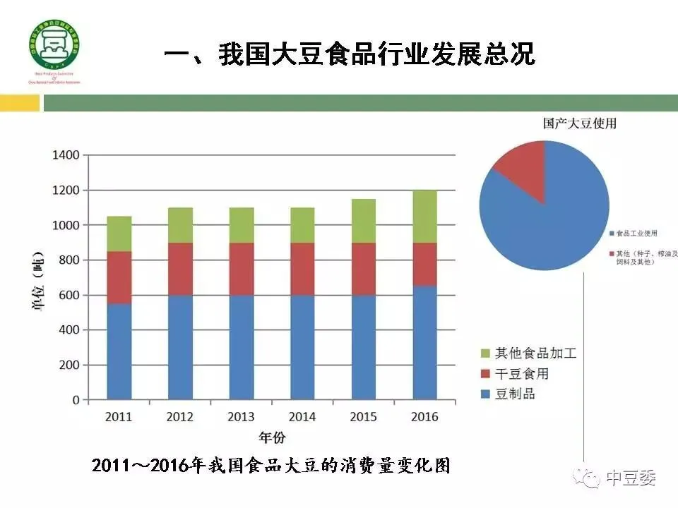 2016年,我国用于食品工业的大豆量约1200万吨,比2015年增加4.5%左右。其中: