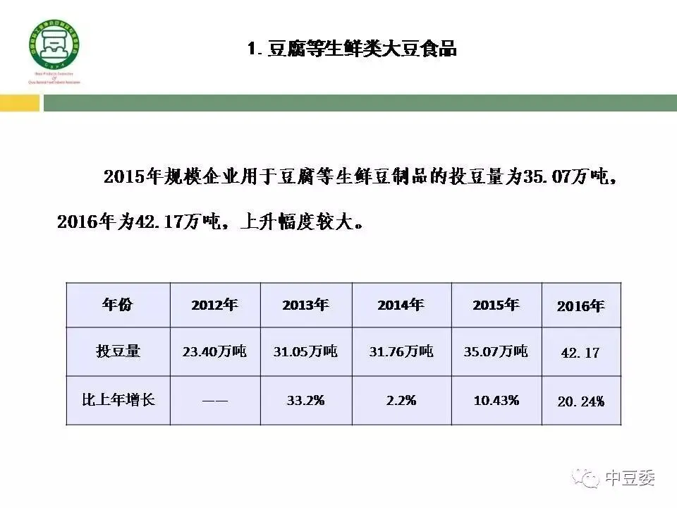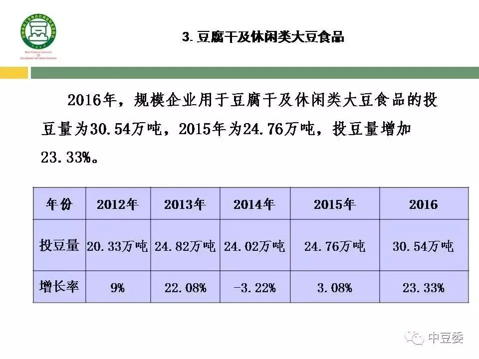 在实体经济不景气的情况下,豆制品行业的大幅度增长特别可贵,2016年全国食品行业规模企业的产值比2015年仅增加了3.3%。