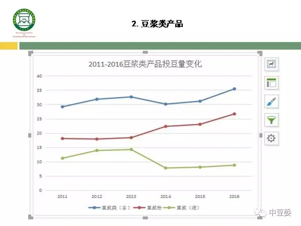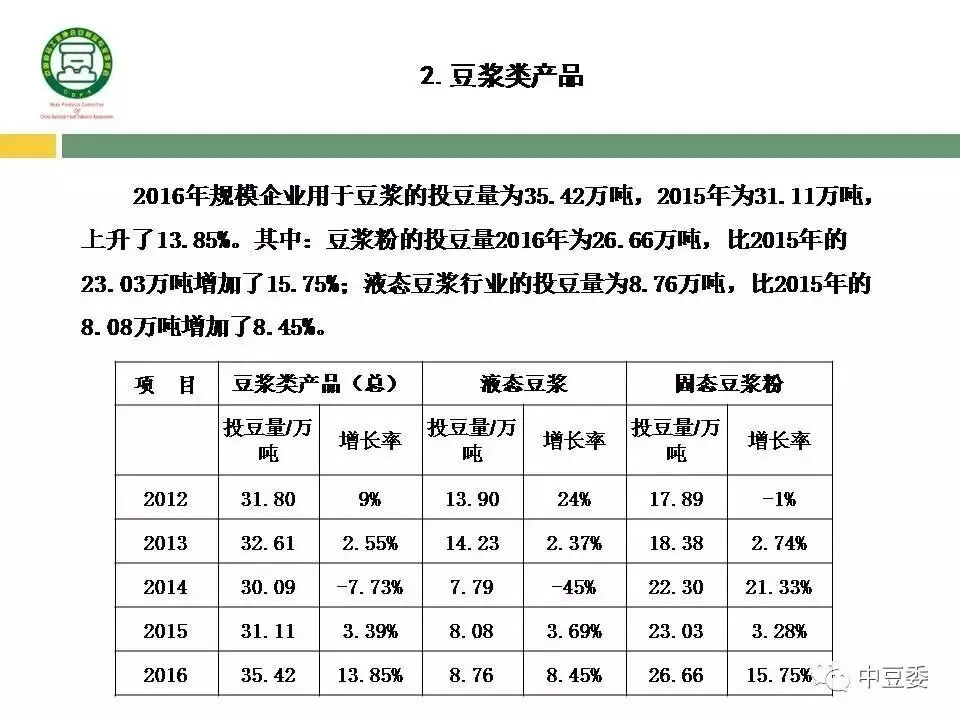 豆浆粉规模企业2016年投豆量(产量)增长了15.75%,而2015年增加3.28%,可见2016年增速大大加快。