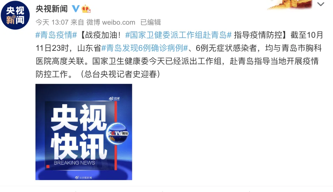 中国青年报(ID:zqbcyol 整理:张小松)综合央视新闻、青岛市卫健委等。