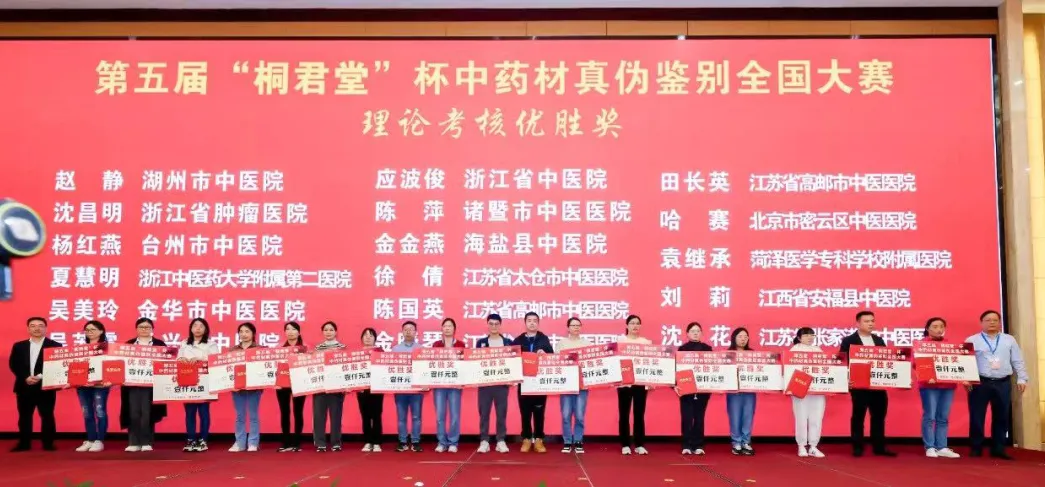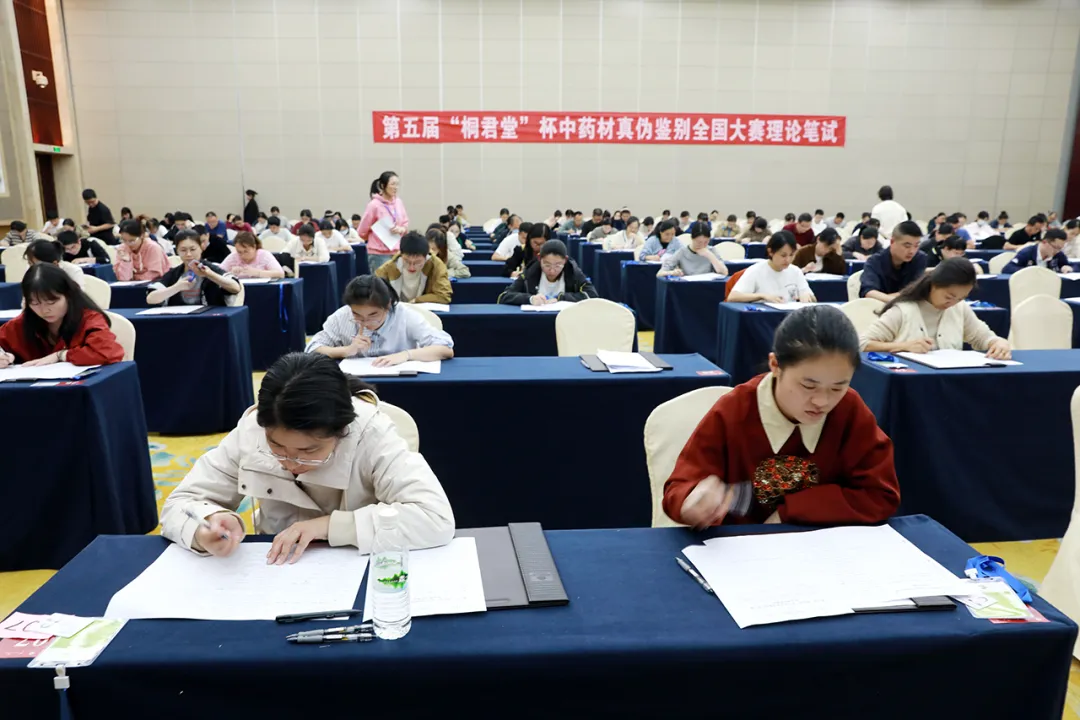 第五届“桐君堂”杯中药材真伪鉴别全国大赛由中国中药协会主办,浙江省中医药学会、浙江省中医药大健康联合体承办,桐庐县市场监督管理局、桐庐县卫生健康局、桐君堂药业有限公司等单位协办,本次大赛规模空前,吸引了来自全国107家参赛代表队参加,每支代表队由3名人员组成,1名领队,2名队员同时参加理论笔试和实物鉴定,全方位考验中药从业者辨别中药材真伪的“真功夫”。