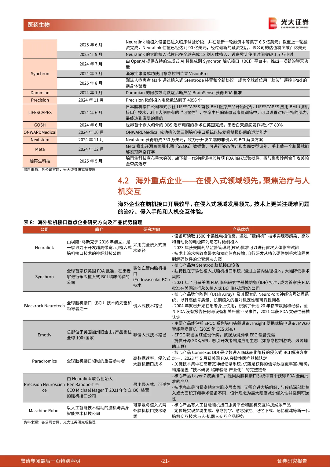 在此背景下,特此分享光大证券的《脑机接口行业深度报告:解码大脑交互密码,开启人机协同纪元》,涉及Neuralink、Synchron、Blackrock Neurotech、Emotiv、Paradromics、Precision Neuroscience、Maschine Robot、创新医疗、三博脑科、翔宇医疗、伟思医疗、强脑科技、博睿康、脑虎科技、阶梯医疗、诚益通等全球知名公司核心优势分析。