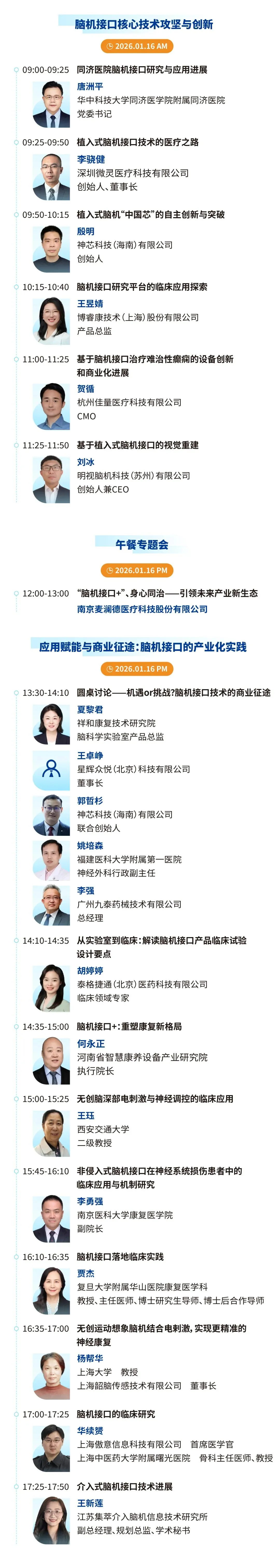 近20位来自神经科学、脑机研发与临床领域的顶尖先驱,聚焦“脑机接口核心技术攻坚与创新”与“脑机接口的产业化实践”等核心议题带来深入的探讨,同时还将有20多家优质展商携带其最新脑机接口产品莅临现场,多个维度为您解密这场由脑科学引领的静默革命。