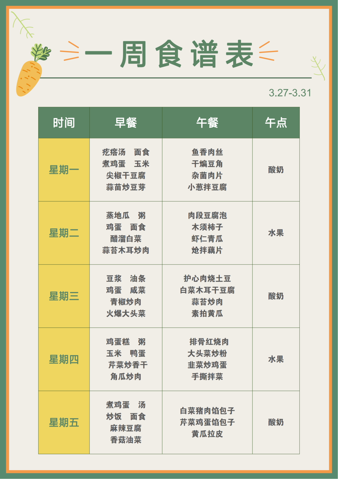 【知食分子】省二建公司机关食堂 3.27-3.31 食谱