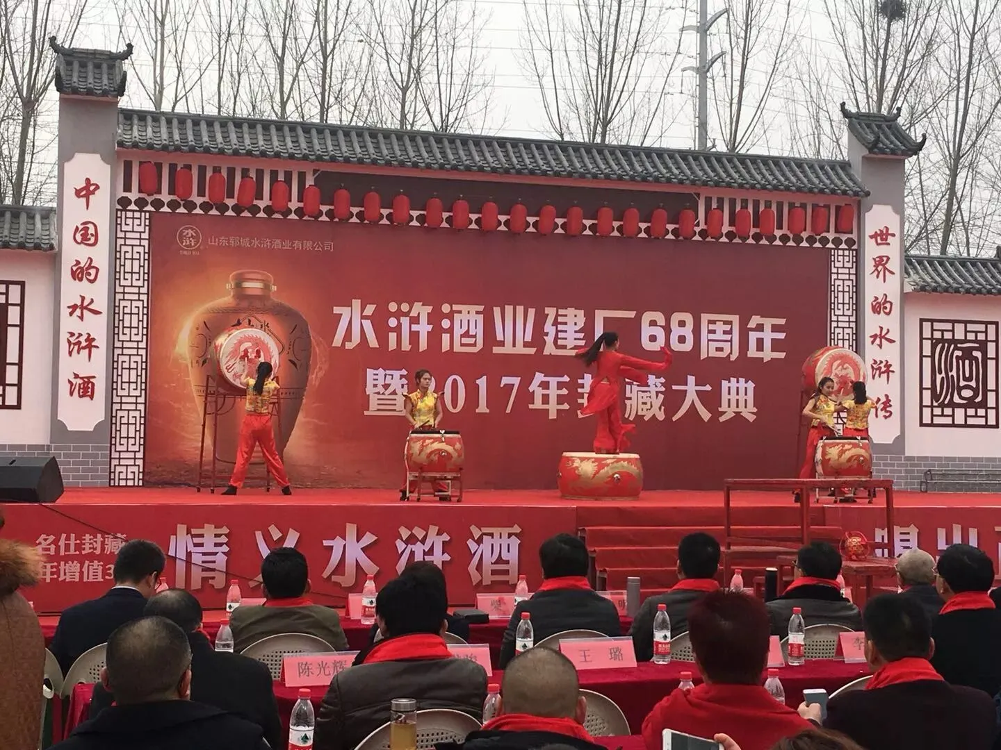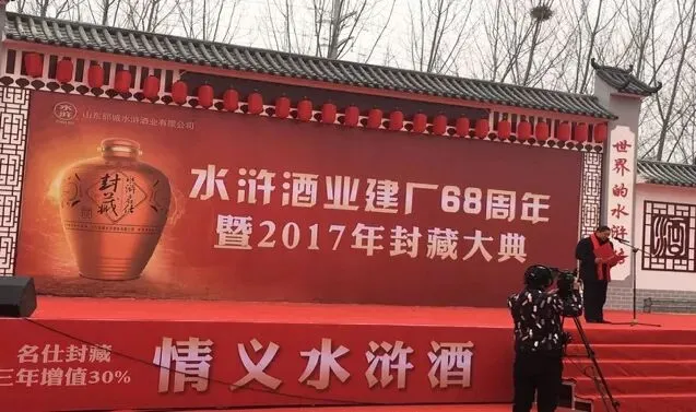 12月3日,“水浒酒业建厂68年暨2017年封藏大典“在山东郓城盛势召开。作为国内首家以国学名著命名的白酒品牌,会议当天吸引了山东省白酒协会会长姜祖模、郓城县委副书记孙迁国、北京盛初投资咨询有限公司总经理柴俊等上千名白酒行业精英与政府领导,共同开启了一场饱含水浒文化特色的封藏盛典。